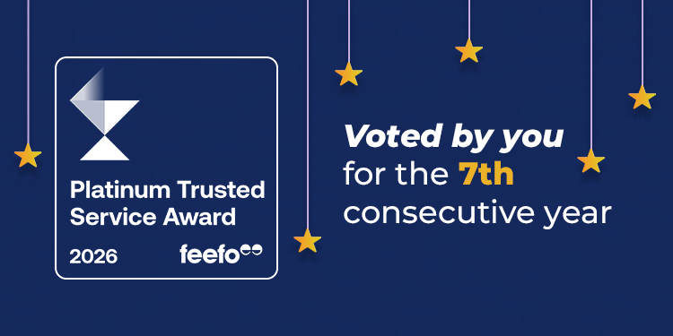 Proud winners of the Feefo Platinum Trusted Service Award 2024 for the fifth consecutive year