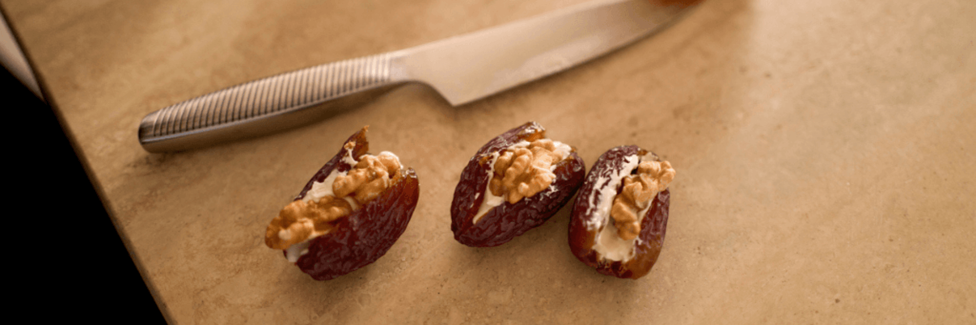 Sweet, chewy Medjool dates paired with crunchy walnuts — a quick, naturally sweet snack that’s rich in fibre and energy-boosting.