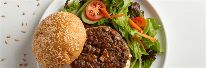 A rich and umami-packed plant-based burger made with shiitake mushrooms, black beans, and miso. Perfectly hearty and satisfying, served with your favourite toppings.