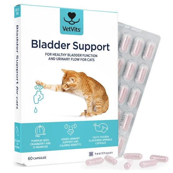 A scientifically formulated supplement designed to promote healthy bladder function and urinary flow in your cat. These tasty, chicken-flavoured sprinkle capsules combine proven ingredients that work together to support urinary tract health, prevent unwanted accidents, and ease common signs of bladder discomfort. Each capsule can be given whole or easily opened and sprinkled over your cat’s food, perfect for fussy eaters.