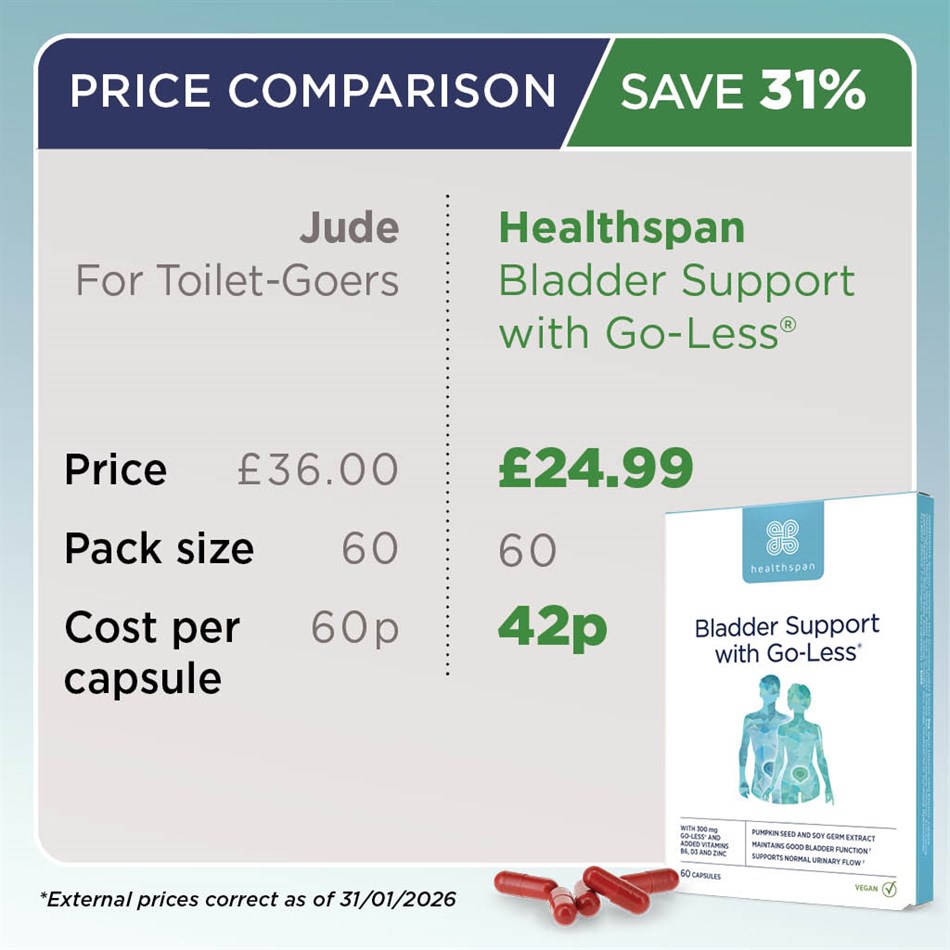 Why choose Healthspan’s Bladder Support with Go-Less®?