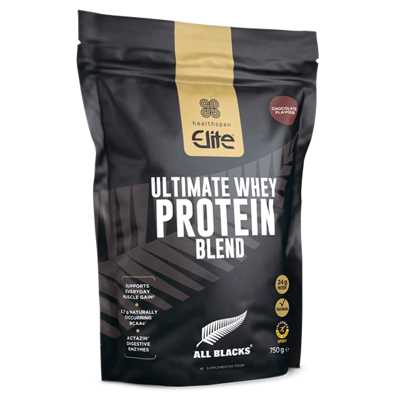 As we age, a loss in muscle mass can affect strength & mobility. Getting enough high-quality protein is key to maintaining muscle and staying active as you age. Elite All Blacks Ultimate Whey Protein provides a premium blend of whey concentrate and isolate, giving you the essential support your body needs, whether you're working out or just keeping up with everyday life. Each serving provides a high level of protein (24 g) and 5.7 g BCAAs (Branched Chain Amino Acids). Actazin® has also been included, a protease enzyme sourced from New Zealand kiwi fruit which breaks down protein into smaller peptides for better absorption in the body.