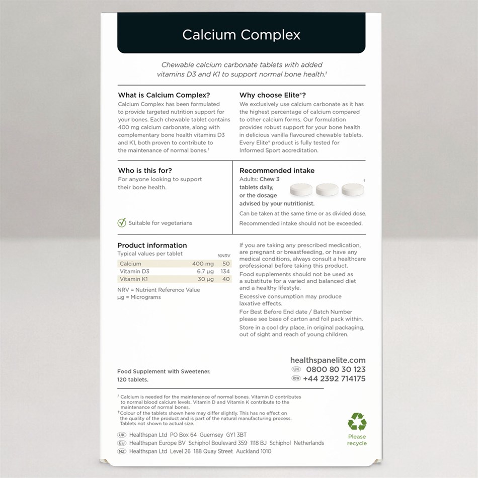 Calcium Complex has been formulated to provide targeted nutrition support for your bones. Each chewable, vanilla flavoured tablet provides calcium, along with vitamin D3 which aids calcium's absorption, and vitamin K1, another nutrient well known for its benefits to bone health.