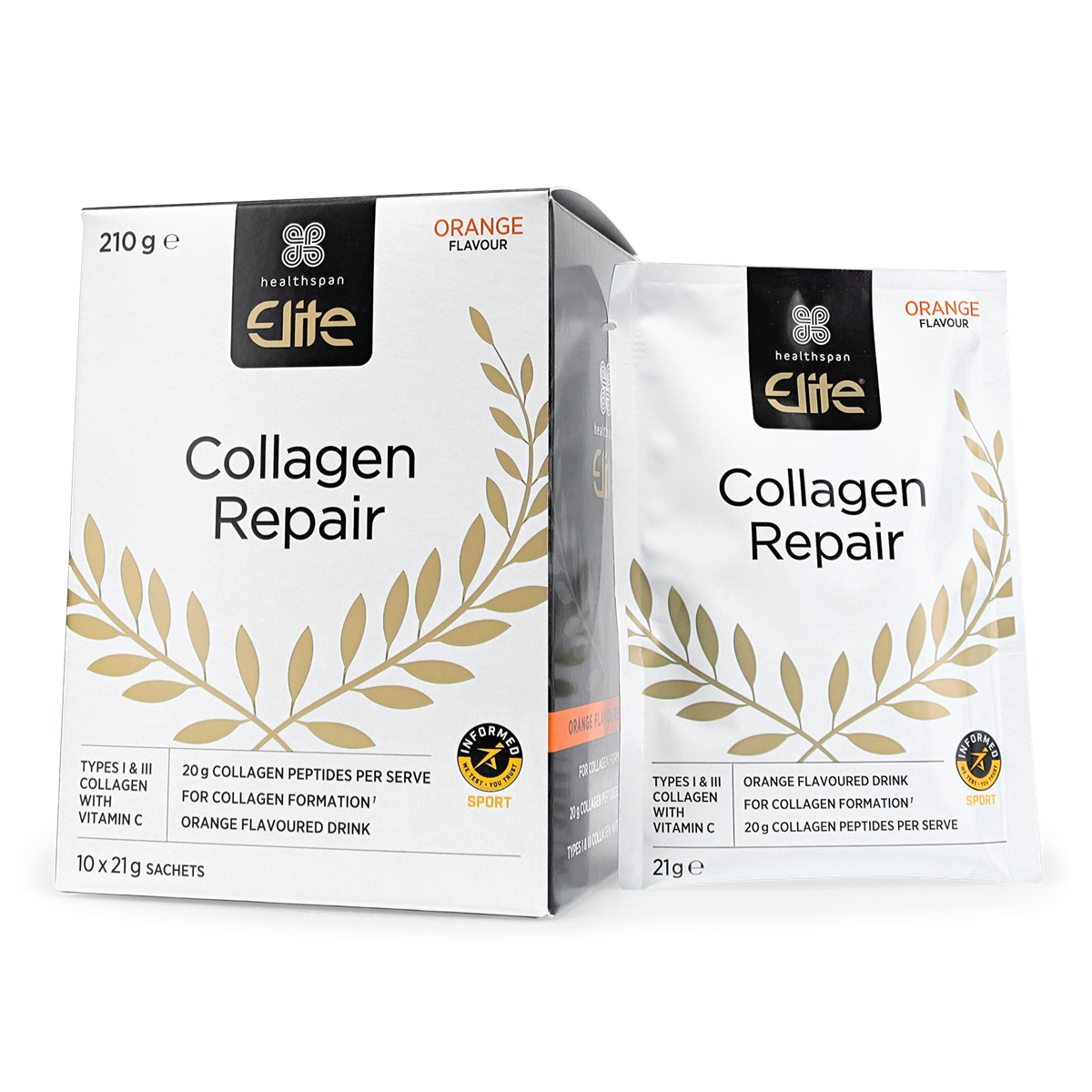Our product has been specifically optimised to support beauty from within. These bioactive collagen peptides have been further separated in a second, controlled hydrolysation process for increased efficiency. We also add vitamin C, which is proven to contribute to normal collagen formations for the normal function of skin and cartilage. Collagen Repair is sealed in tamper evident daily servings. Simply add to water for a delicious orange flavoured drink.