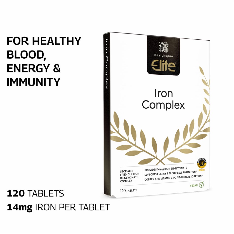 Each Iron Complex tablet contains 14 mg in the ‘stomach friendly’ bisglycinate form. Other forms of iron are often associated with side effects such as nausea and constipation, iron bisglycinate helps to prevent some of these common side effects.