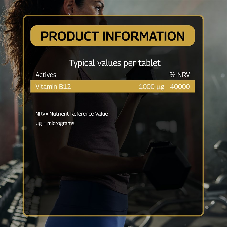 Vitamin B12 is an important vitamin necessary for the formation of red blood cells. It also plays a key role in energy−yielding metabolism, the normal function of the immune system, the reduction of tiredness and fatigue, and normal psychological function.