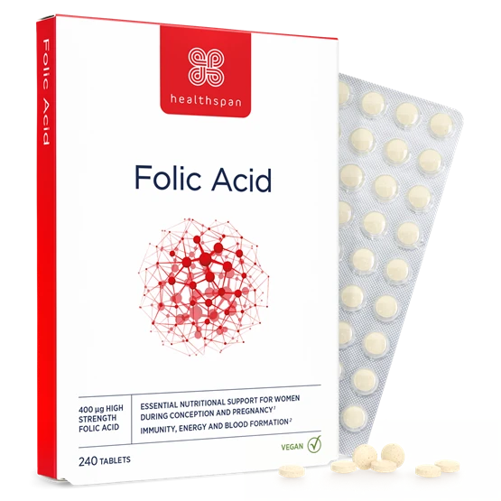 When your granny told you to eat your greens, she knew what she was talking about. Green leafy vegetables such as kale, broccoli, Brussels sprouts and spinach are high in folate, also known as folic acid or vitamin B9. It's important for healthy cell formation, especially for red blood cells, which carry oxygen around our bodies. Because it's water−soluble, we can't store it, so if levels drop too low, you could be at risk of folate deficiency anaemia, when there aren't enough healthy−functioning red blood cells to carry oxygen around your body. These tablets not only help you avoid folic acid deficiency, they also support immune health, psychological functions, and help reduce tiredness and fatigue. But for women who are planning a baby or in the early stages of pregnancy, this vital vitamin is doubly important, as it supports foetus development. Low levels of folate, the natural form of folic acid found in our bodies, is a risk factor for birth defects, such as spina bifida, in the unborn baby. Therefore, The Department of Health recommends that women take a folic acid 400 µg supplement from at least one month before conception until the 12th week of pregnancy to prevent this.