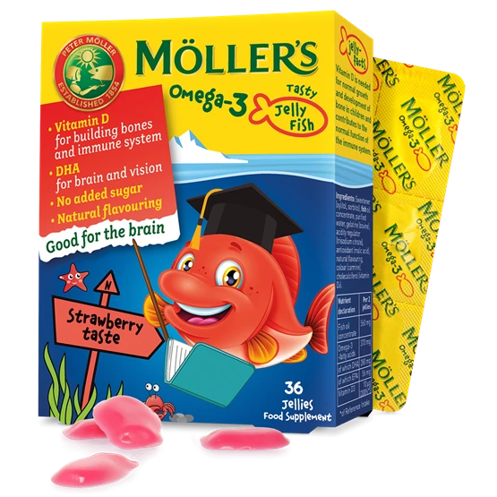 Möller’s Jelly Fish Strawberry Gummies are a unique and delicious alternative to traditional omega 3 liquids and capsules. These soft jellies are easy to chew and taste great, with a natural strawberry flavour. A great treat after breakfast or in lunch boxes. And while they are perfect for young children (3 and above’) adults will love them too!