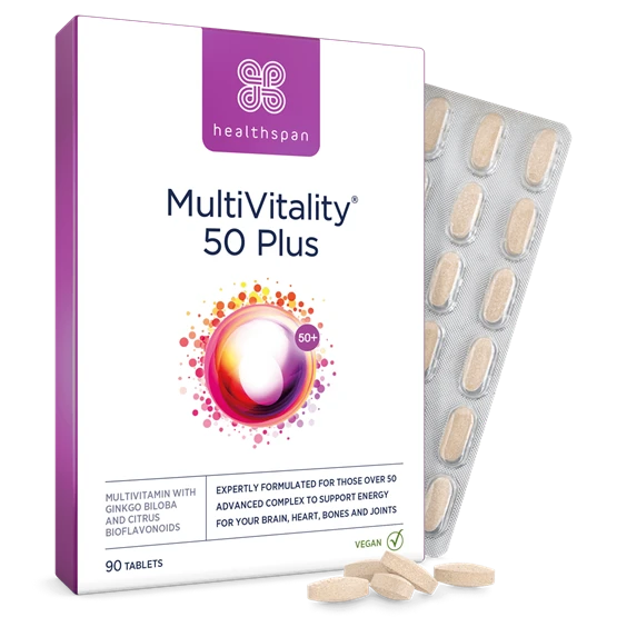 It contains specific vitamins and minerals for the over 50’s, in the appropriate levels required for your wellbeing and immune support, including nutrients that help combat cell damage caused by ageing, unhealthy lifestyle and pollutants. And we’ve added ginkgo biloba extract and citrus bioflavonoids. Citrus bioflavonoids are compounds naturally found in citrus fruit alongside vitamin C, believed to be potent antioxidants that work synergistically with vitamin C to help combat free radicals. Ginkgo biloba extract is taken from the dried leaves of one of the oldest trees on earth and is currently being investigated for its potential to support circulation and memory. However, it’s important to stress that more research is needed before the EU can approve health claims for either of these two botanicals.