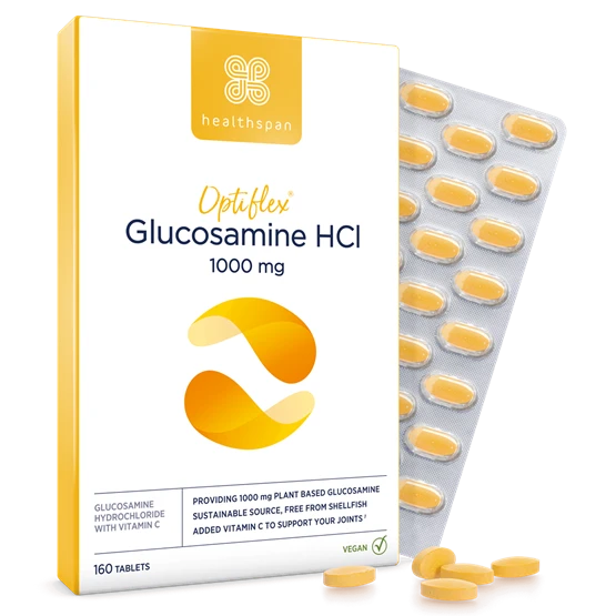 As with most of Healthspan’s products, Optiflex® Glucosamine HCl (hydrochloride) can’t be found from any other supplier. Glucosamine tablets are generally made using prawn/crustacean shells, but we pioneered shellfish−free, vegan glucosamine HCl, which we call Optiflex®, made from a sustainable and natural corn−based source. But it’s not just the quality – glucosamine HCI contains 40 % more actual glucosamine per gram than standard glucosamine sulphate (2KCl). Vitamin C has also been added to our formulation to support your joint and cartilage health.*