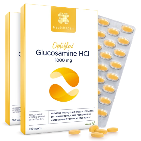 As with most of Healthspan’s products, Optiflex® Glucosamine HCl (hydrochloride) can’t be found from any other supplier. Glucosamine tablets are generally made using prawn/crustacean shells, but we pioneered shellfish−free, vegan glucosamine HCl, which we call Optiflex®, made from a sustainable and natural corn−based source. But it’s not just the quality – glucosamine HCI contains 40 % more actual glucosamine per gram than standard glucosamine sulphate (2KCl). Vitamin C has also been added to our formulation to support your joint and cartilage health.*