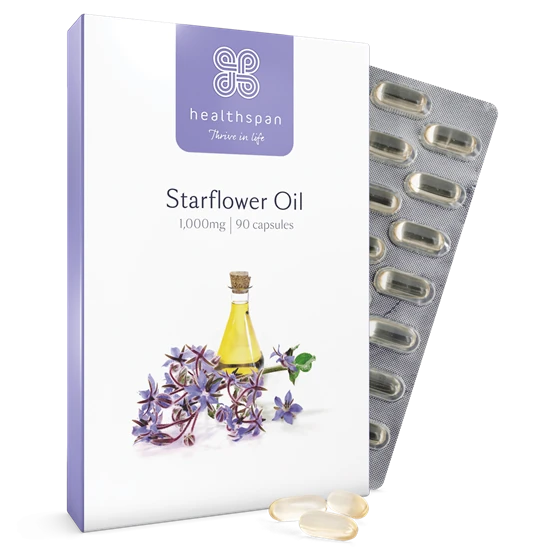 Many women will have heard of evening primrose oil and maybe even starflower oil as a popular supplement, but not as many will know that it's the gamma−linolenic acid component of these supplements that's important. GLA is a nutritious omega 6 fatty acid that the body can produce in small amounts; it is widely recognised by many women which find an additional boost of this fatty acid to be beneficial. Starflower Oil is the richest known natural source of gamma−linolenic acid and is commonly taken by women of all ages, from puberty onwards.