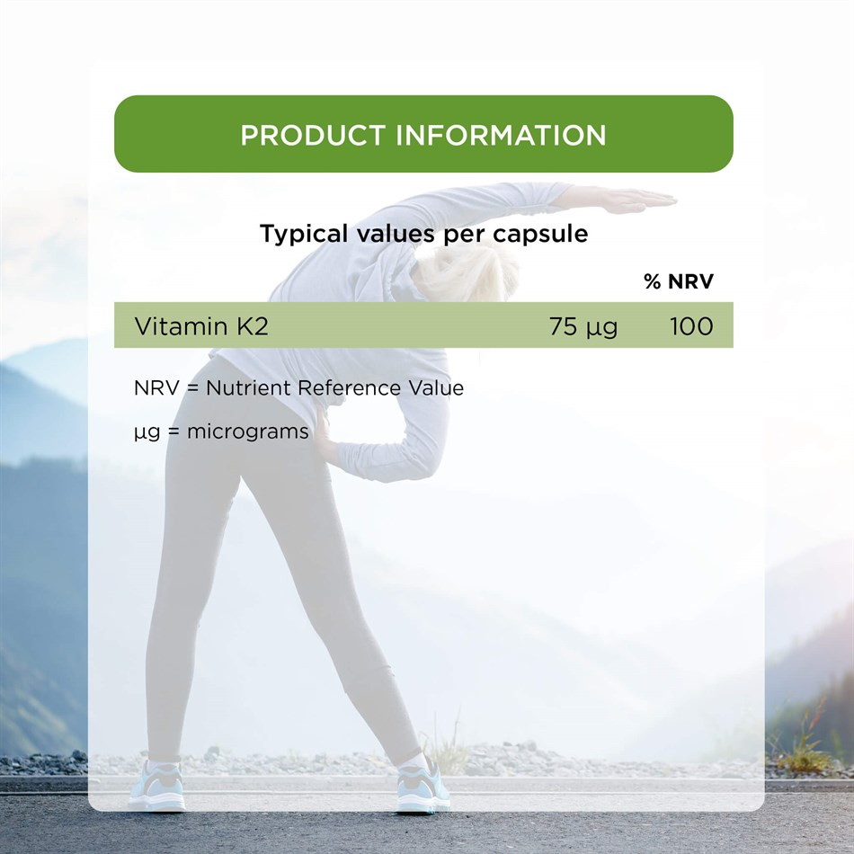 For ease, tablets are small and easy to swallow, and the high-strength formulation – using the purest and most active form of vitamin K2 – means you only need to take one a day.